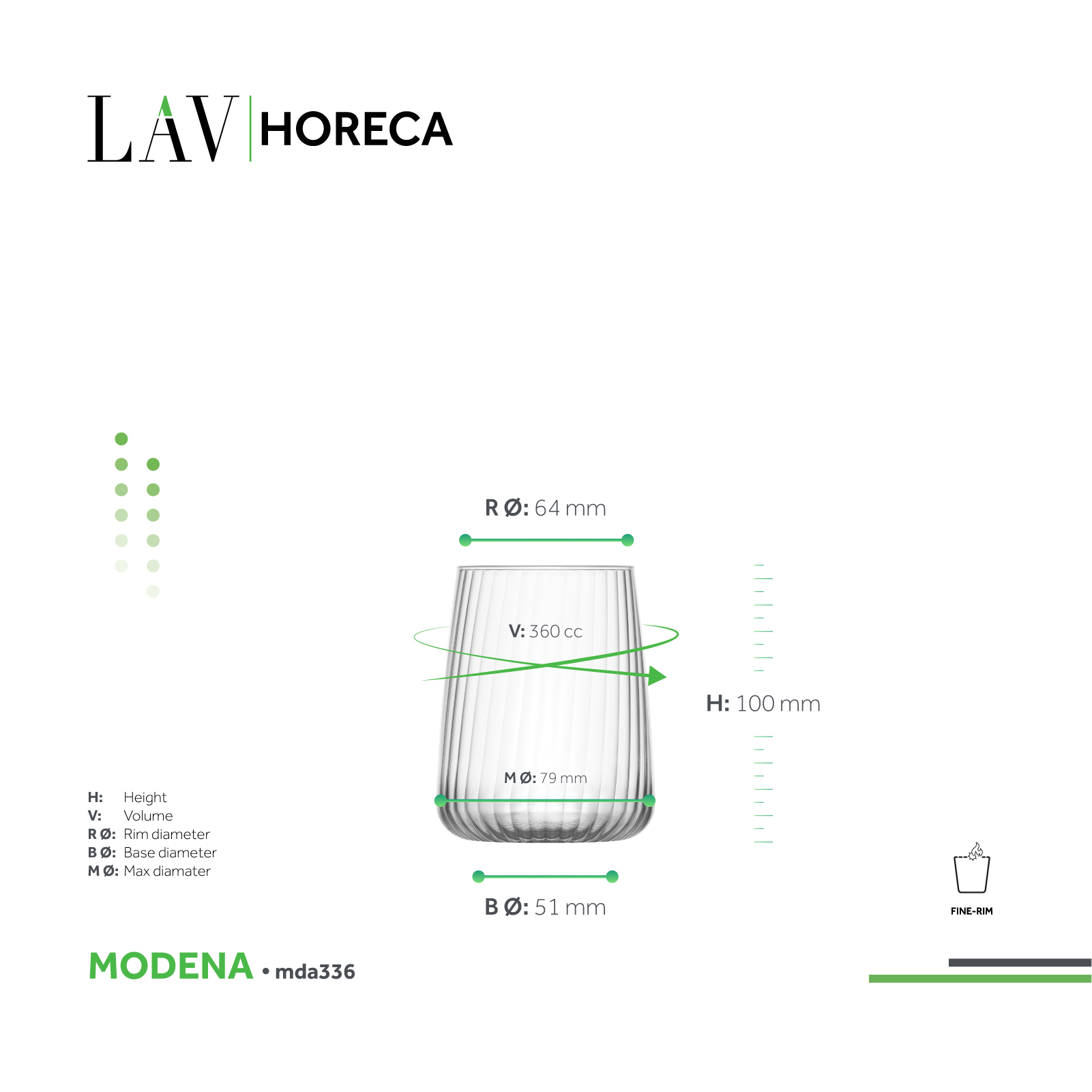 A low-profile form that brings confident simplicity to casual-elegant service. Light plays through the vertical striations, while added surface area helps the wine open; the tapered mouth concentrates aroma for a cleaner finish. Conical geometry and crisp edges maintain the collection’s architectural character. Mix with the stemmed goblet to vary presentation without breaking visual unity.