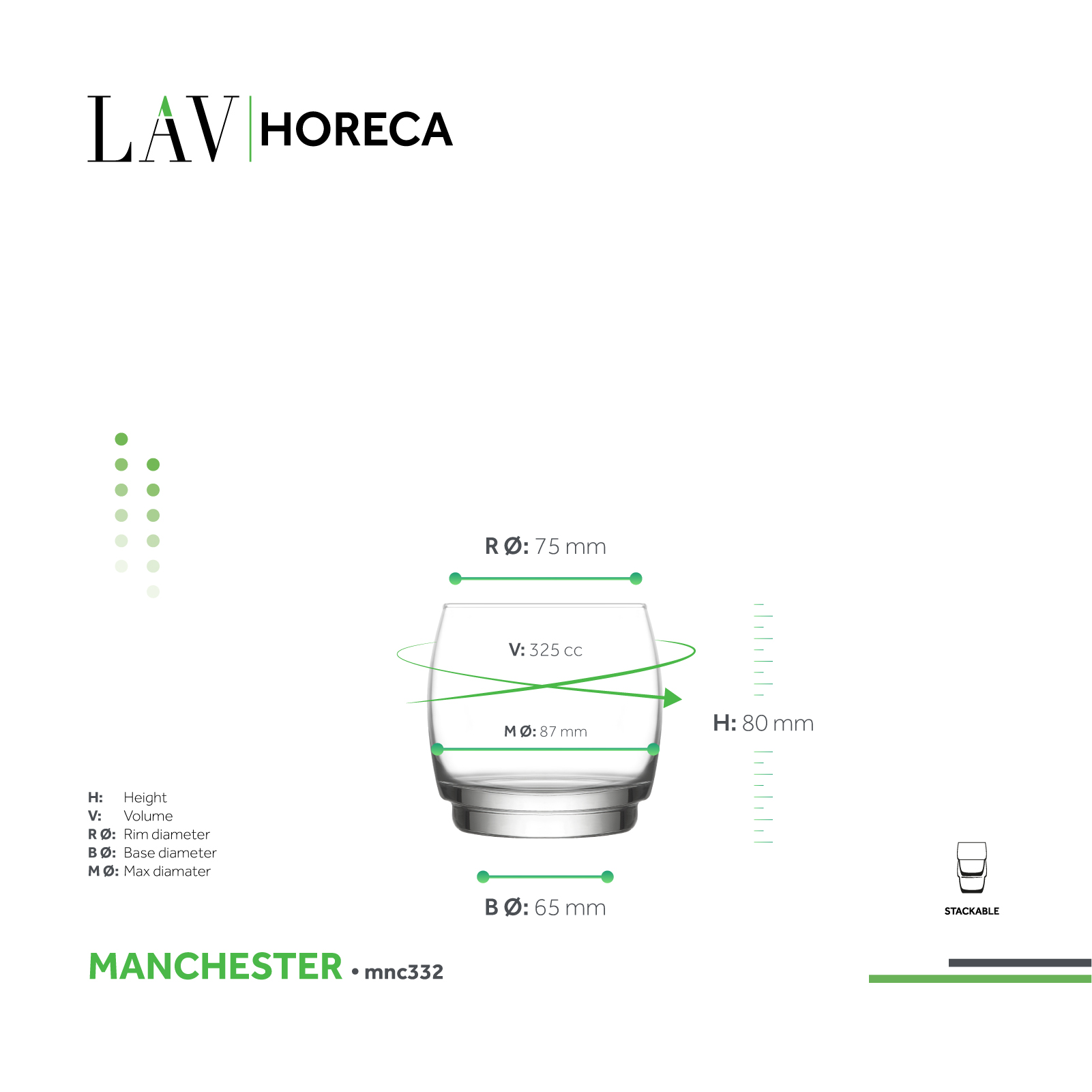 - Stackable: All Manchester tumblers fit seamlessly into one another, saving space in storage and service areas.