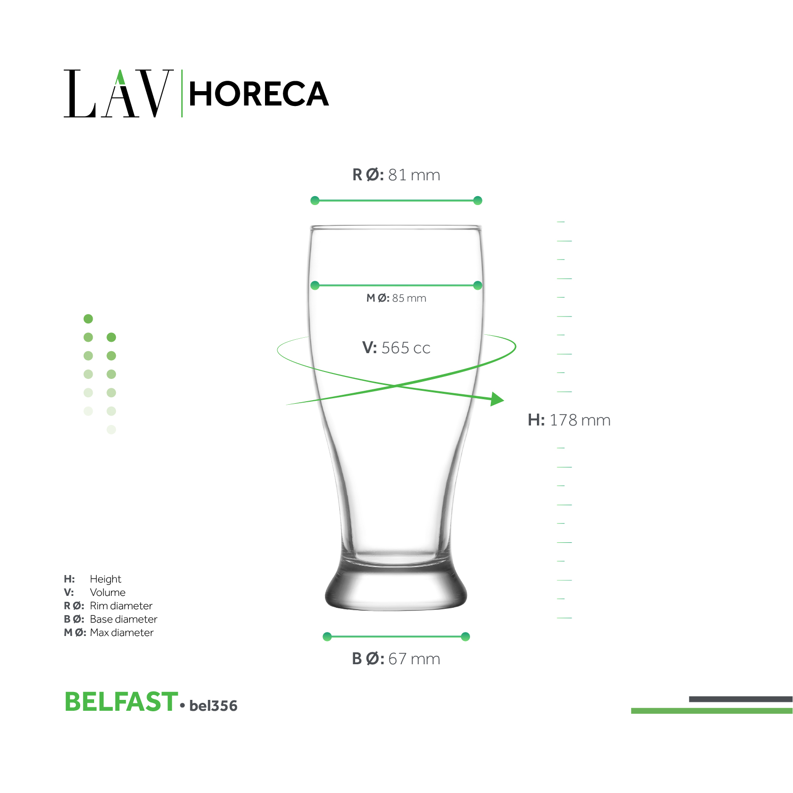 Belfast’ın bira üretim geleneğine saygı duruşunda bulunan bu bardaklar, İrlanda stoutu ve red ale servisi için idealdir. 330 cc’lik küçük boy Belfast bardağı, Smithwick’s gibi gövdeli ve maltlı bitişli İrlanda red ale biraları için mükemmel bir sunum sağlar. 565 cc hacmindeki büyük boy Belfast bardağı ise ikonik kremamsı köpüğüyle klasik Guinness stout birasını sunmak için tasarlanmıştır; bu form, biranın yoğun lezzetlerini ve pürüzsüz dokusunu ön plana çıkarır.
