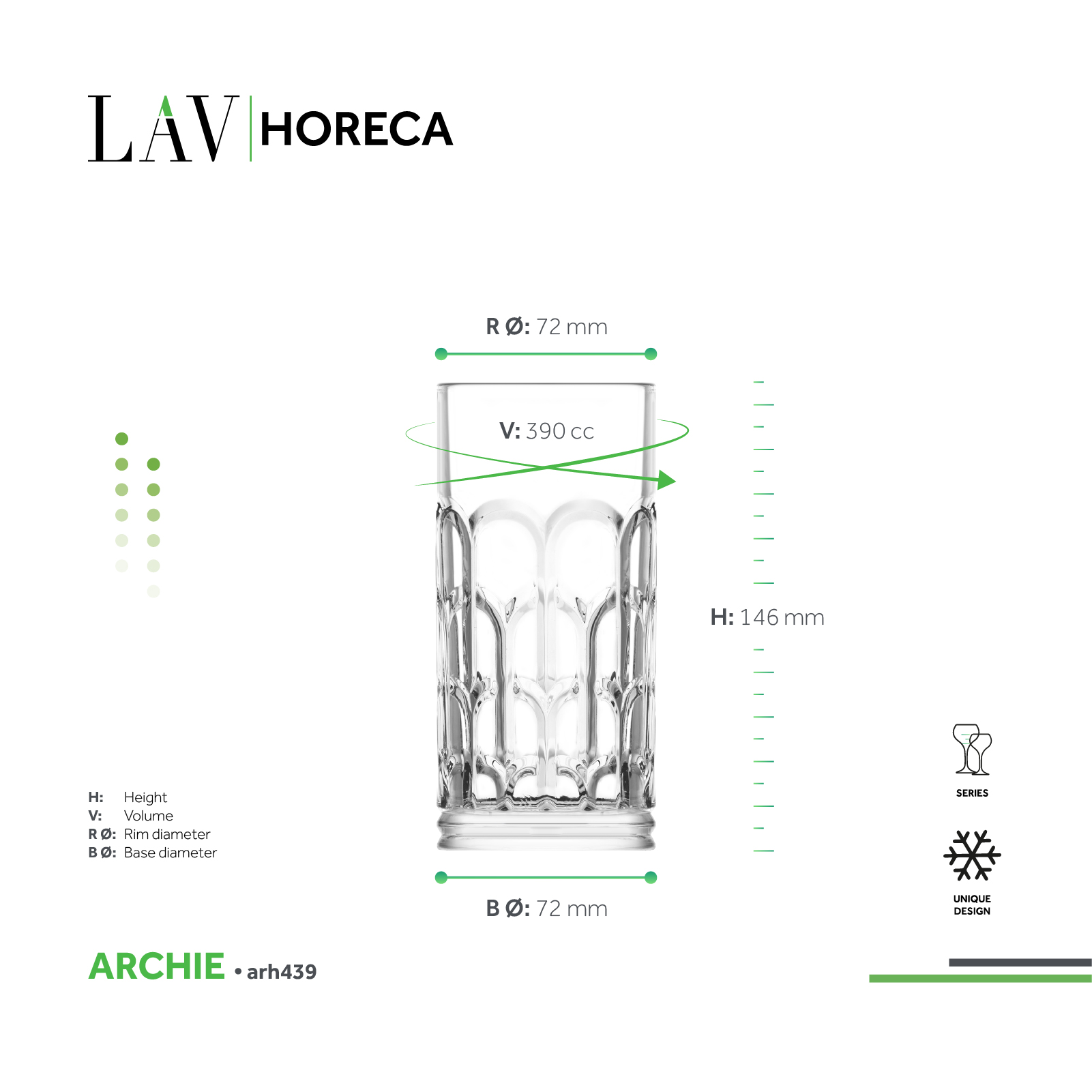 Zamansız mimari formlardan ilham alan Archie bardakları, klasik yapıların görkemini yansıtan zarif kavisli kemer detaylarına sahiptir. Profesyonel kullanım için tasarlanan bu bardaklar, dayanıklılık ve çizilmeye karşı direnç sunarken aynı zamanda güçlü bir görsel etki yaratır. Uzun bardak, ferahlatıcı bir Tom Collins kokteyli servis etmek için idealdir; sade çizgileri, bu hafif ve kabarcıklı kokteylin karakteriyle uyum içindedir. Kısa viski bardağı ise mimari zarafetiyle öne çıkar ve zengin bir single malt viskinin keyfini çıkarmak için mükemmeldir. Bu tasarım, sofistike ve sıcak bir lounge atmosferini çağrıştırır.