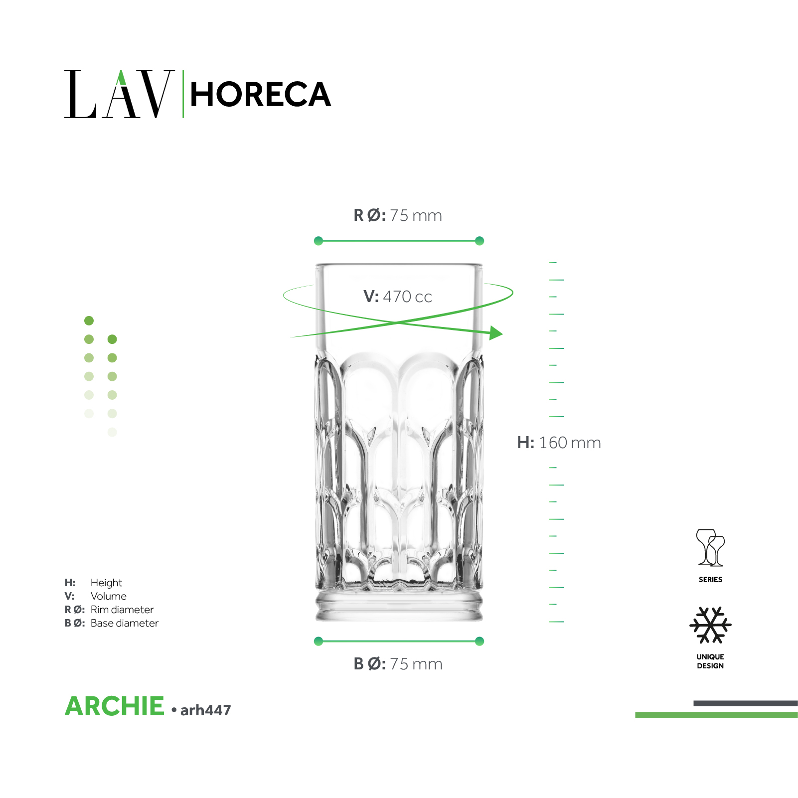 Zamansız mimari formlardan ilham alan Archie bardakları, klasik yapıların görkemini yansıtan zarif kavisli kemer detaylarına sahiptir. Profesyonel kullanım için tasarlanan bu bardaklar, dayanıklılık ve çizilmeye karşı direnç sunarken aynı zamanda güçlü bir görsel etki yaratır. Uzun bardak, ferahlatıcı bir Tom Collins kokteyli servis etmek için idealdir; sade çizgileri, bu hafif ve kabarcıklı kokteylin karakteriyle uyum içindedir. Kısa viski bardağı ise mimari zarafetiyle öne çıkar ve zengin bir single malt viskinin keyfini çıkarmak için mükemmeldir. Bu tasarım, sofistike ve sıcak bir lounge atmosferini çağrıştırır.